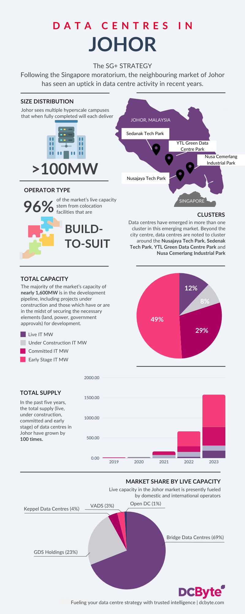 Today, total capacity (live, under construction, committed and early stage) in Johor has surpassed 1,500MW. The majority of this growth has occurred in the last three years, showing no signs of slowing down within the Johor market.
