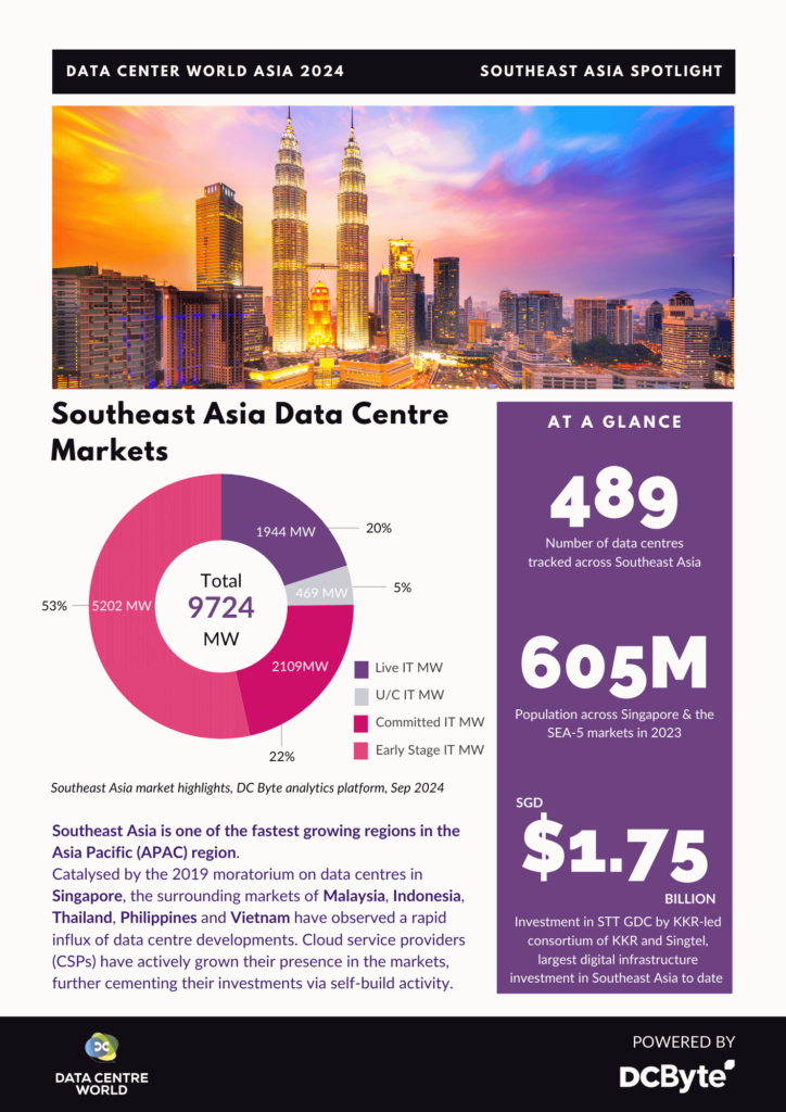 Catalysed by the 2019 moratorium on data centres in Singapore, the surrounding markets of Malaysia, Indonesia, Thailand, Philippines and Vietnam have observed a rapid influx of data centre developments. Cloud service providers (CSPs) have actively grown their presence in the markets, further cementing their investments via self-build activity.