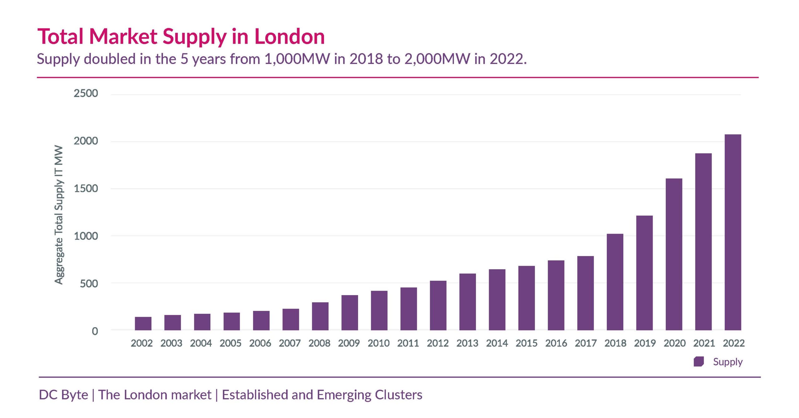 The London data centre market is by far the largest in Europe and the second largest data centre market in the world, after the Loudon market in Northern Virginia. London’s data centre market grew from its dominant financial industry, who were the early adopters of data centres and fibre outside telecommunication switching houses. The banks’ decision to open facilities and take colocation in Slough led to it becoming London’s key development location. Since the proliferation of the public cloud, London has seen substantial development, with The London Docklands and Slough in West London becoming two of the most prominent submarkets in EMEA. In comparison, Slough and West London has 521.52MW live IT power compared to emerging markets such as Milan and Madrid which have 195.82MW and 161.85MW, respectively.