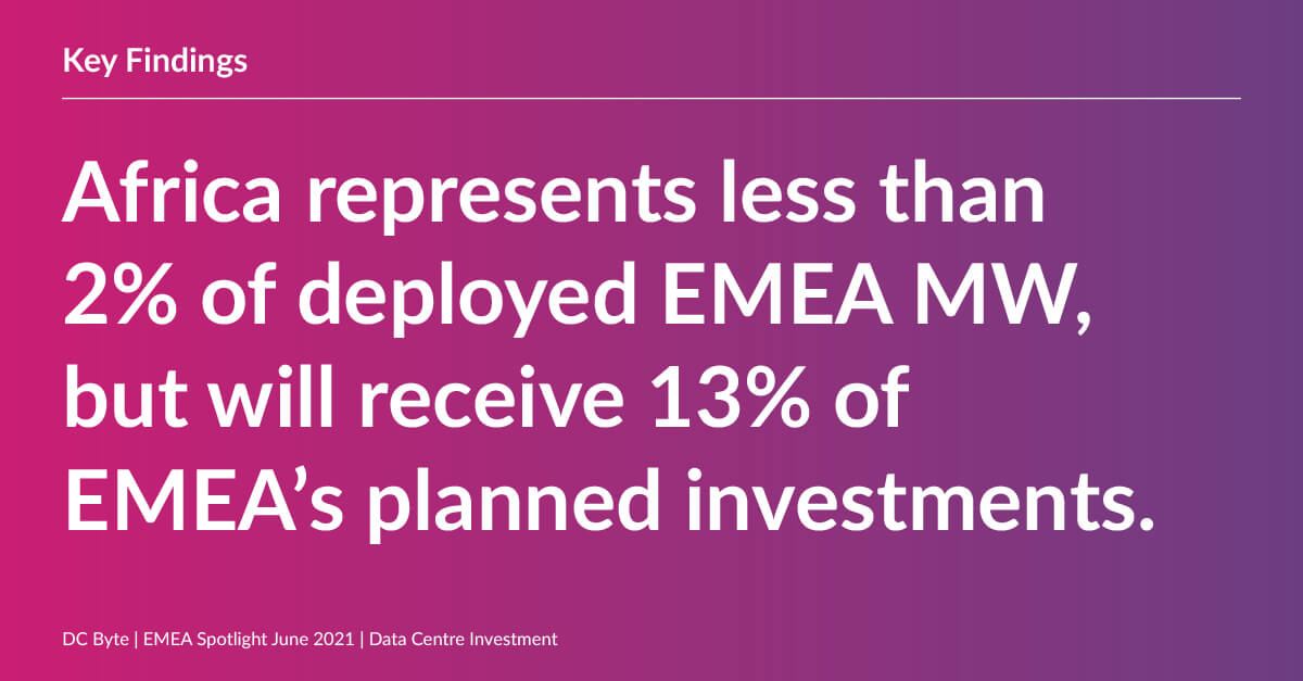 • Based on DC Byte’s analysis of private equity announcements, Africa is expected to receive a disproportionate level of investment in the coming years.