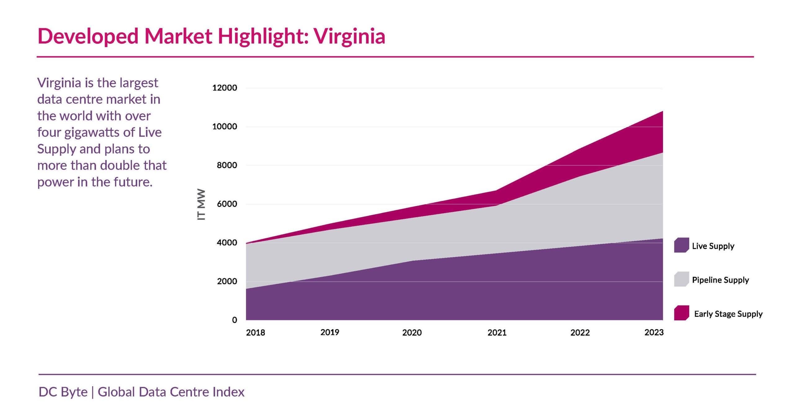 • Power challenges: Extensive market growth often leads to constraints on the power grid. As a result, new developments and operators may face delays in power delivery or extended delivery timelines, as observed in Loudoun County, Virginia.