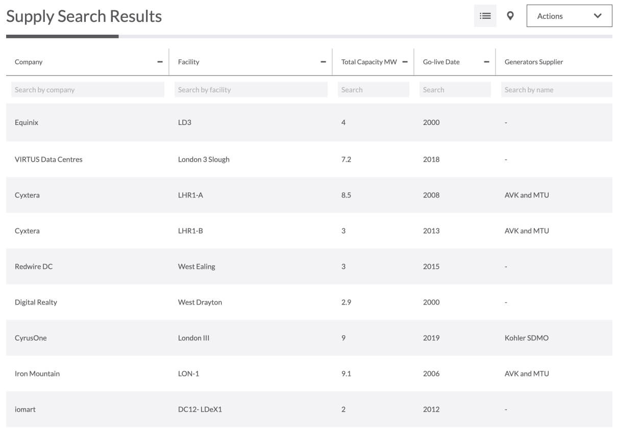 View detailed, aggregated information on over 8,000 data center facilities around the world, including hyperscale, self-build and colocation facilities.
